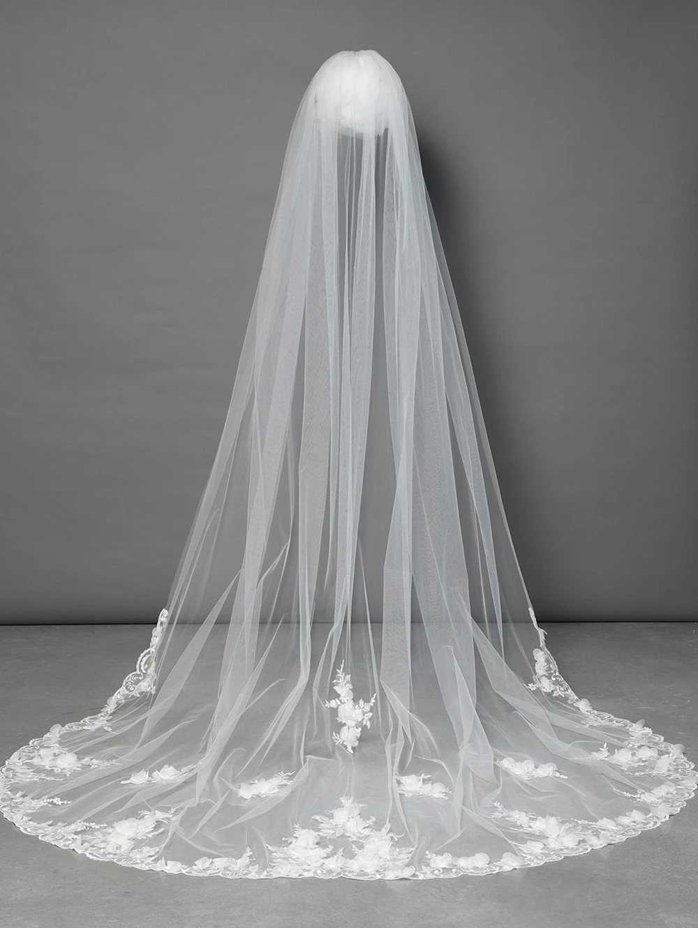 Poirier Enkellaagse Sluier Met Luxe Bloemversiering S117-300/1/MED