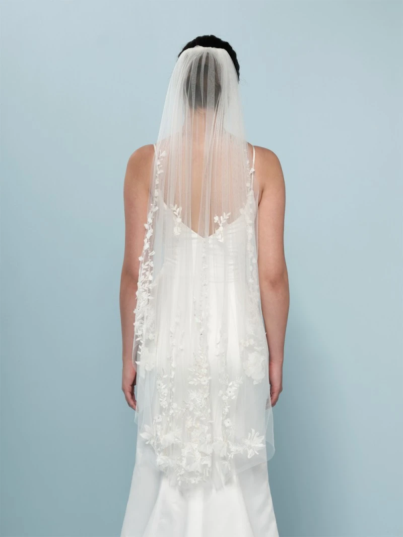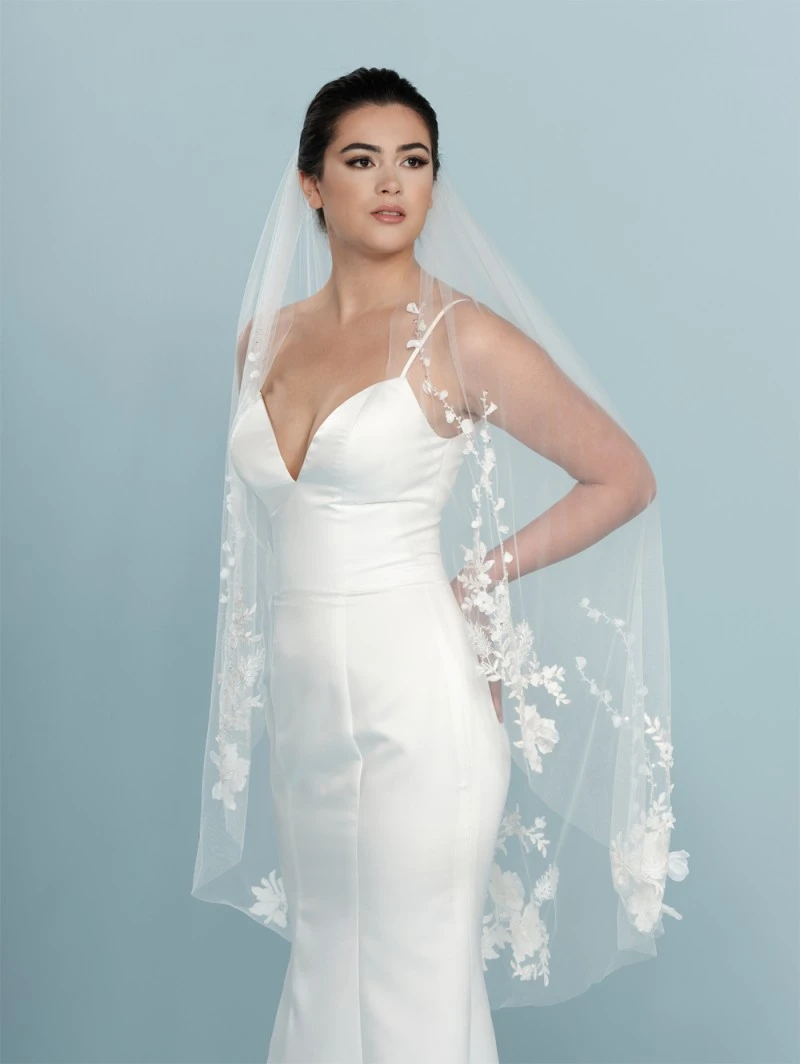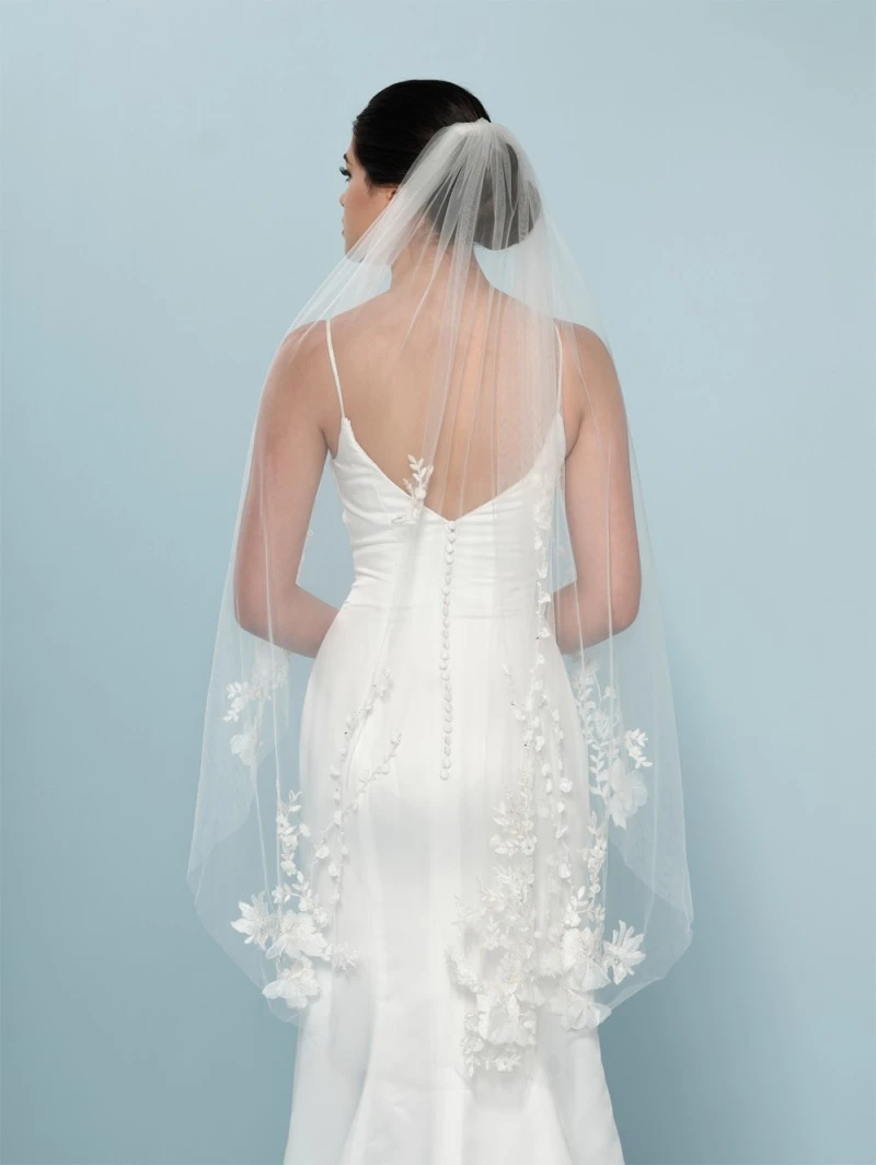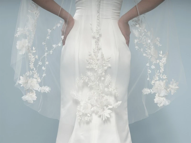 Sluierrand:Â Â deluxe 3D-bloemversiering, borduursel, bloemetjes versierd met pailletjes en kristalletjes, organza bloemetjes
