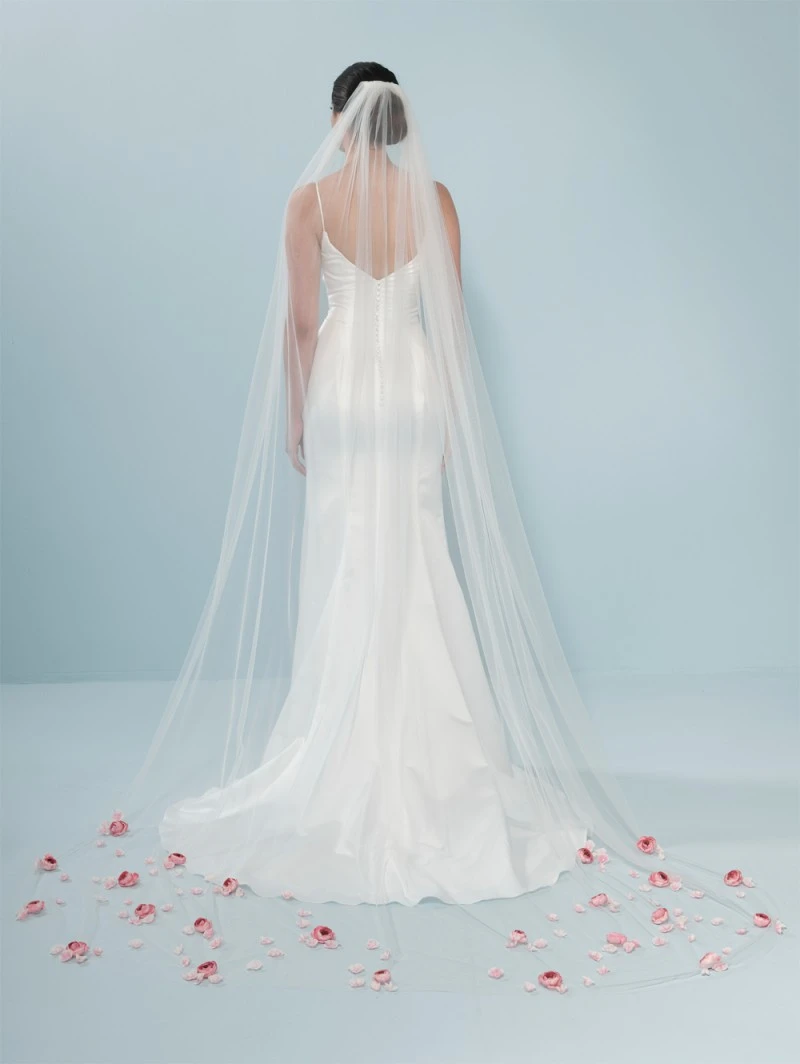 Sluier details: met roze rozen en andere kleine bloemetjes