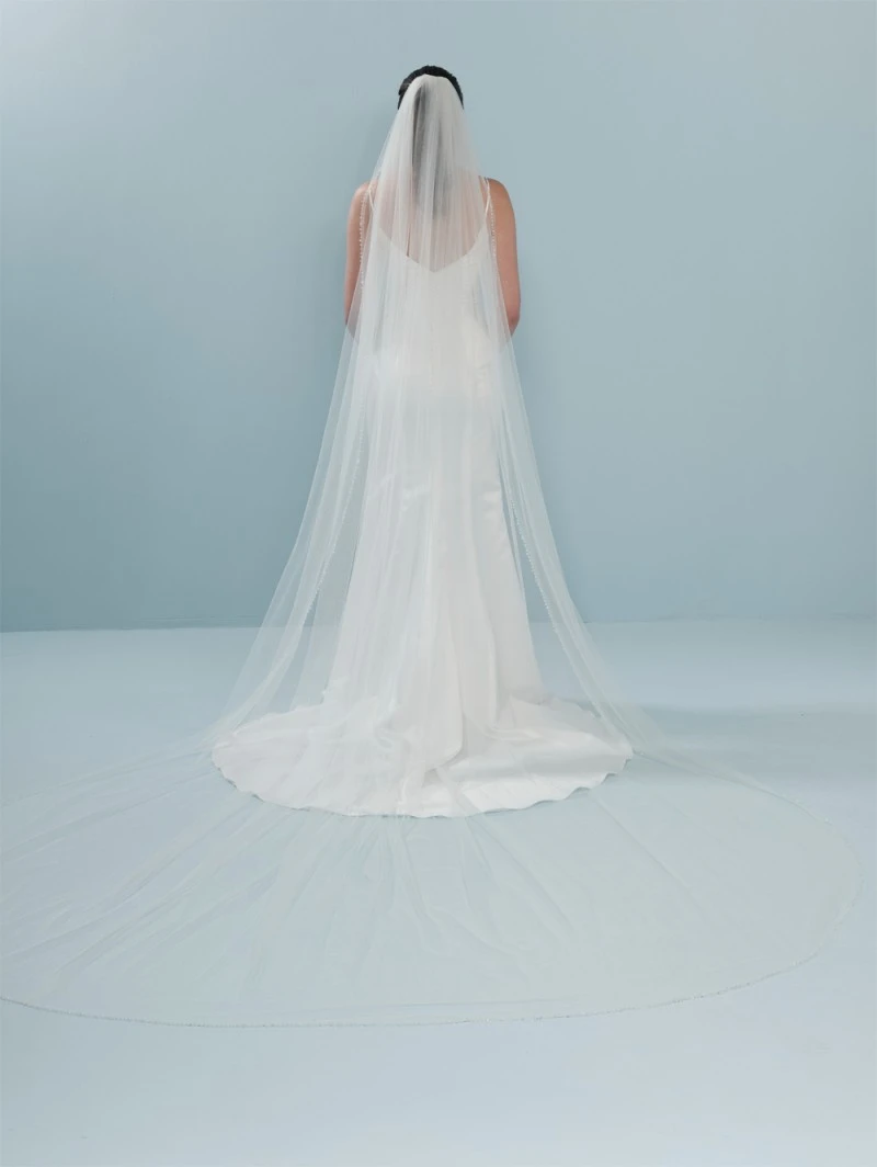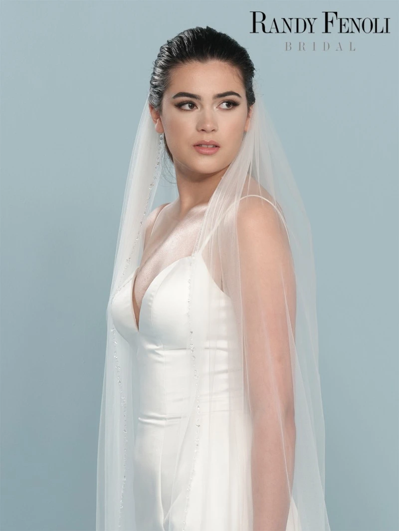 Details: eenlaagse ivoorkleurige soft-tule-sluier, luxe kristallen