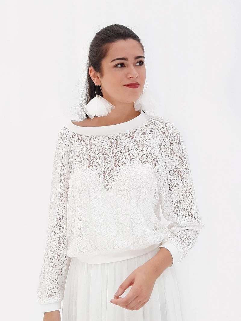 Details: Kanten top met lange mouwen